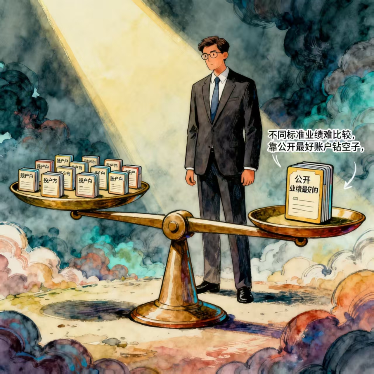 之间是没法比较的,比如某公司做十个小账户,赌十个方向,然后公开业绩最好的那个账户,