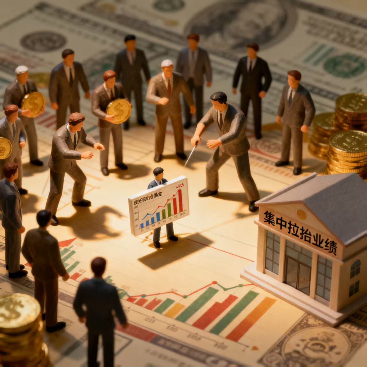 金来拉抬小基金持有品种的价格,比如说有个几千万规模的小基金,然后公司有几十亿甚至