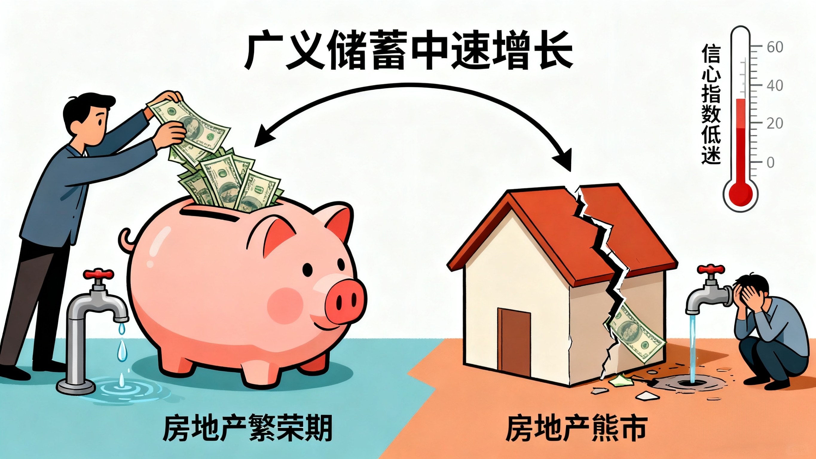 房地产火爆的时候很多人认为房地产分流了消费资金,房地产回落将导致消费畅旺,事实证明房地产熊市打击了动物精神,导致消费意愿回落。其实广义储蓄保持中速增长,并不是每个人都没钱。 缺的是信心。
