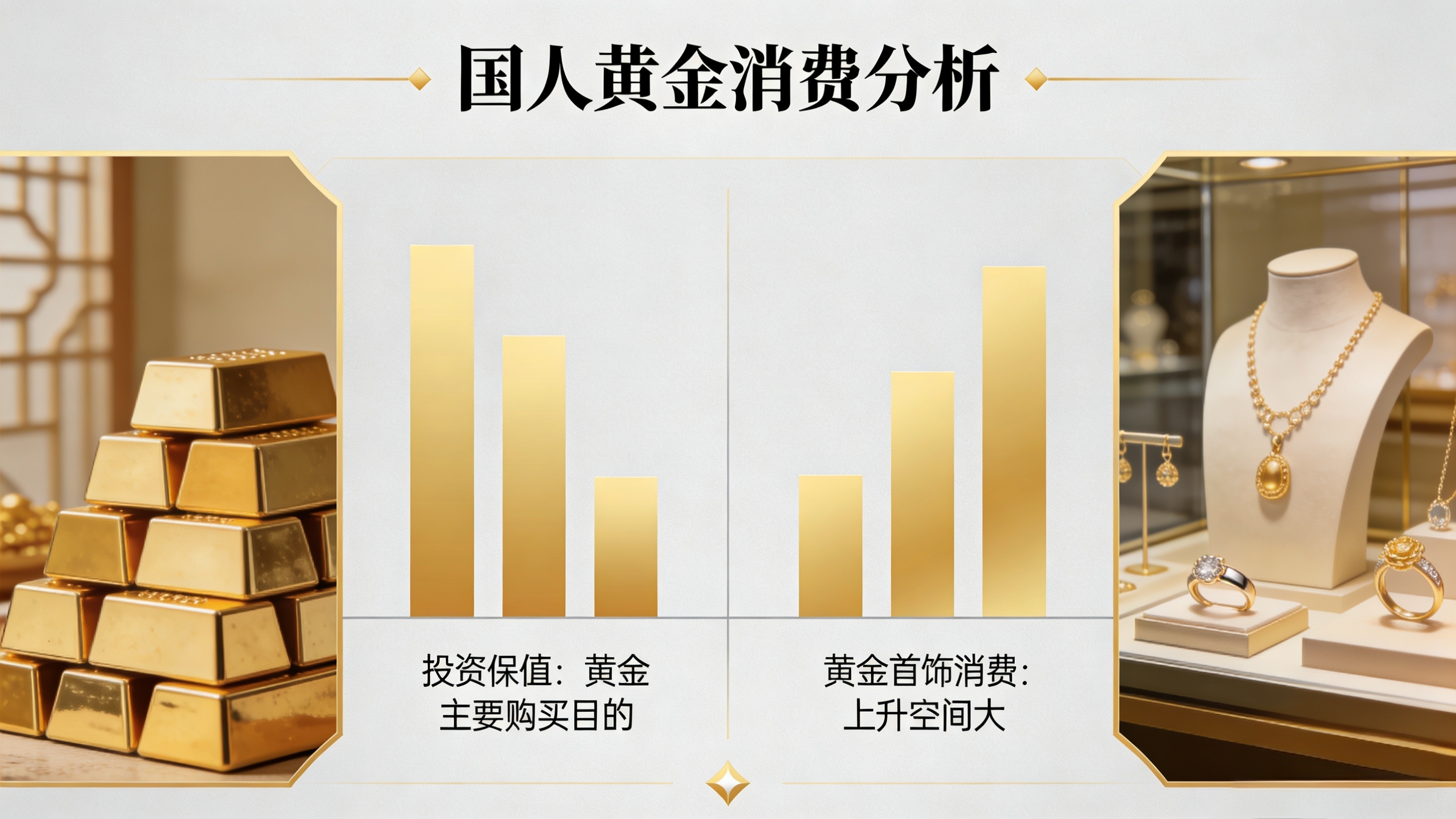 看来国人买黄金,真实目的还是投资保值。不过呢,黄金首饰消费的上升空间蛮大的。